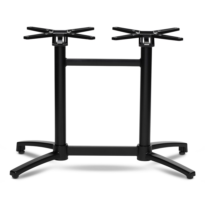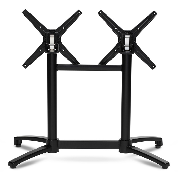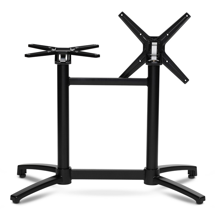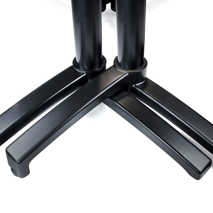 Barcelona är ett fällbart bordsstativ som gör hanteringen och förvaringen avsevärt mycket lättare. Genom en snabb manöver fälls bordsskivan ned längs sidan av stativet och skapar helt nya förvaringsmöjligheter. Barcelona är tillverkat av svart pulverlackerad aluminium.